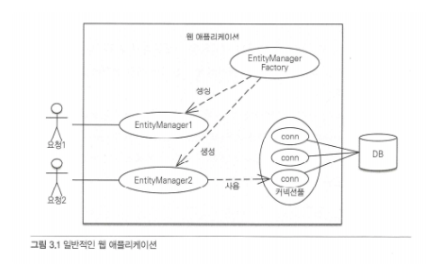 - 그러므로 EntityManager는 스레드에 안전하지 않으므로, 여러 스레드가 동시에 같은 em을 사용하면 문제가 발생할 수 있다. 절대 공유하면 안된다.