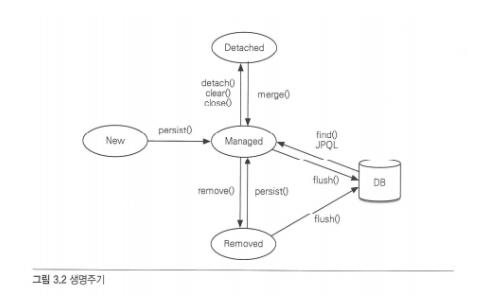 - 영속성 컨텍스트가 관리하는 엔티티를 영속 상태라 한다.