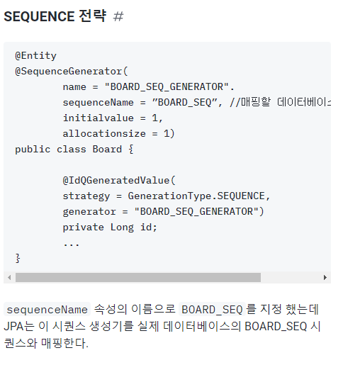 - 따라서 SEQUENCE나 IDENTITY 전략은 사용하는 데베에 의존한다.