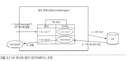 - 1차 캐시에 엔티티 없으면 데베에서 조회하고 1차 캐시에 저장한다.